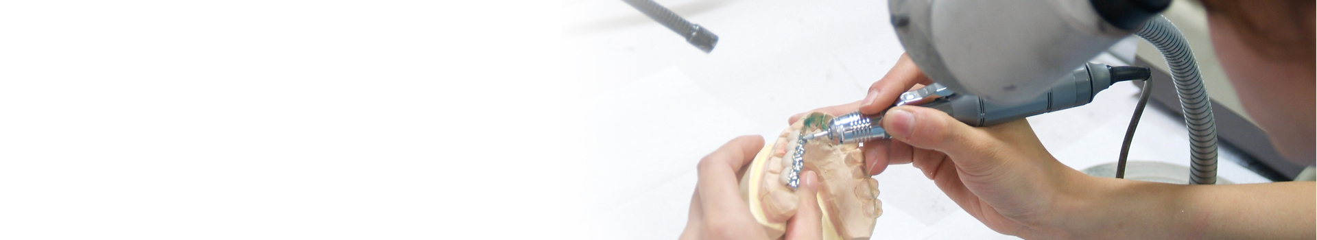 そしてコットンロール、ガーゼを用いて口唇の排除、粘膜面の保護を行い、最後に歯肉保護レジンで歯肉部分を覆い歯科重合用光照射器で硬化させます。